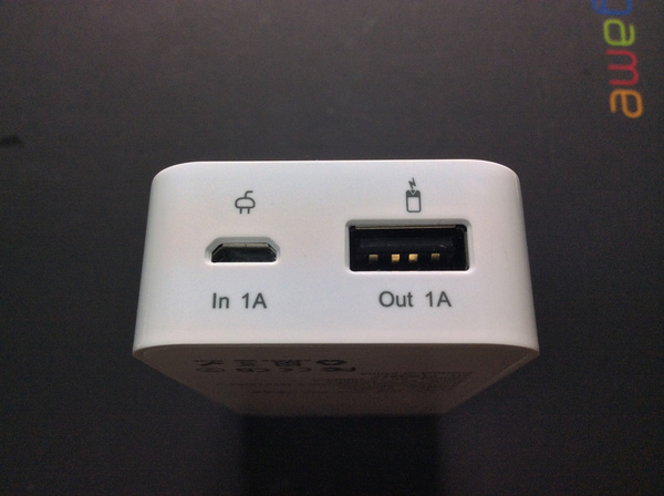【▼】行動電源下方的輸入及輸出埠,各為1A。