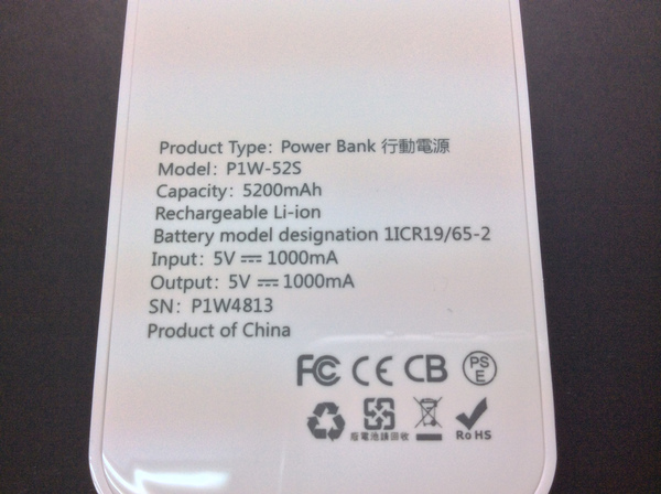 【▼】行動電源底部有著電池型號等相關資訊,1ICR19/65-2應該就是三星電芯的型號。