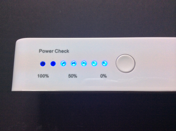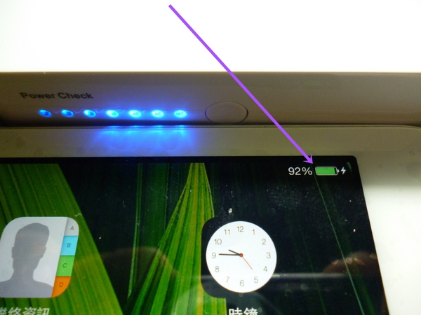 【▼】側邊多段式LED電量顯示指示燈,有七個依比例來呈現目前電量。