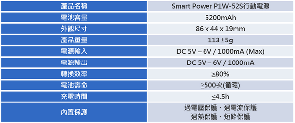 【▼】行動電源P1h-52S產品介紹:
