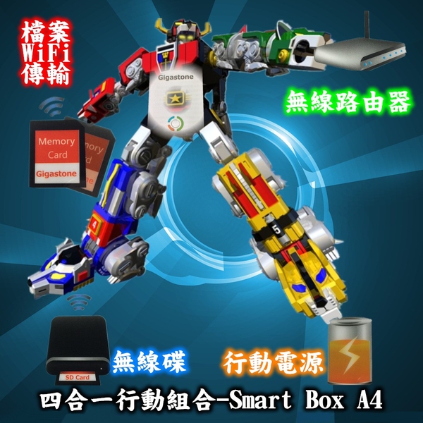 對於『多合一』這個名詞,筆者在小學的時候,就已經無師自通認識它了,而且還知道結合起來的威力是多麼的強大。筆者相信只要是六年級的朋友都會有印象,那就是放學回家必看的卡通-『五獅合體聖戰士』,也俗稱為『百獸王』,故事描述五隻不同顏色 (紅、黃、綠、藍、黑) 的獅子一起對抗惡勢力,不過隨著惡勢力越來越強,單隻獅子已無法相其對抗時,此時五隻獅子就會合體成為萬夫莫敵的聖戰士,回想起來,這是屬於男人之間的浪漫啊!也是筆者將『多合一』的觀念牢記於心的起源。在今日行動裝置上也出現了一款能夠將無線路由器、無線碟、SD卡WiFi無線分享與行動電源整合在一起的產品,名為Gigastone Smart Box A4無線存儲充電寶,究竟是一款什麼樣的產品,能否成為行動組合的聖戰士,讓筆者帶大家一同回顧當天Gigastone Smart Box A4智慧分享體驗會的盛況!