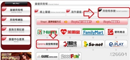 有三種儲值方式,選擇『貝殼幣序號』並圈選『Garena貝殼幣序號』