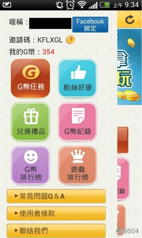 填寫好自己的暱稱過後,重點來了! 邀請碼 GAME01的重點,也是精華所在阿,就是這個邀請碼制度,用戶只要在一開始在邀請碼的地方,填寫親朋好友厝邊鄰居有在使用的邀請碼