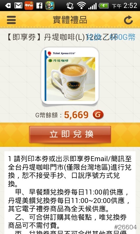 像是丹堤咖啡,就必須去全家列印禮品卷或者是出示即享卷mail,才可以兌換商品