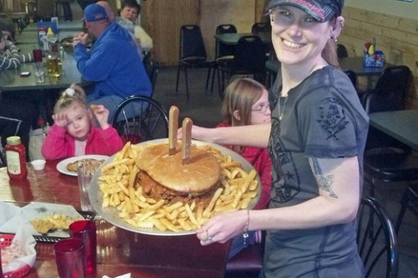 這位大胃王母親戰鬥力驚人,她3分鐘之內就能搞定一份72盎司(約合4.1斤)重的牛排,5分鐘不到一份9磅(約合4.08千克)重的玉米煎餅就被她吃的精光,30分鐘吃完363根雞翅更是小菜一碟。