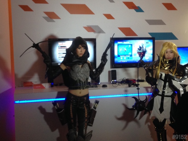 還有幾位身材火辣的show girl,現場還擺放很多台電腦與遊戲機試玩.......3D畫質、順暢度都很讚