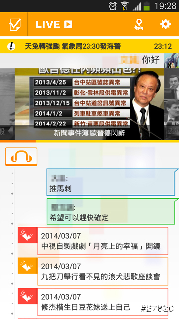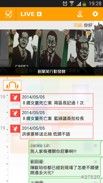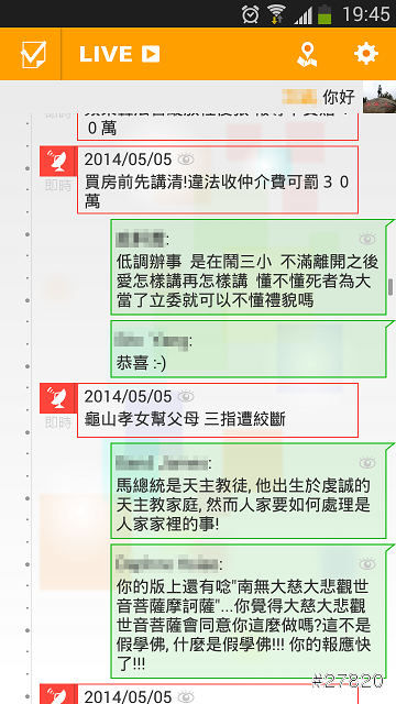 先前某立委去某地方,說了某些話,就造成了網友超踴躍留言,如下圖,大家你言我一句就開始在App上聊起天,當時我也有參與到盛況。(ps.朋友會是藍色的區塊,我朋友沒有跟上話題,所以都沒有藍色的)