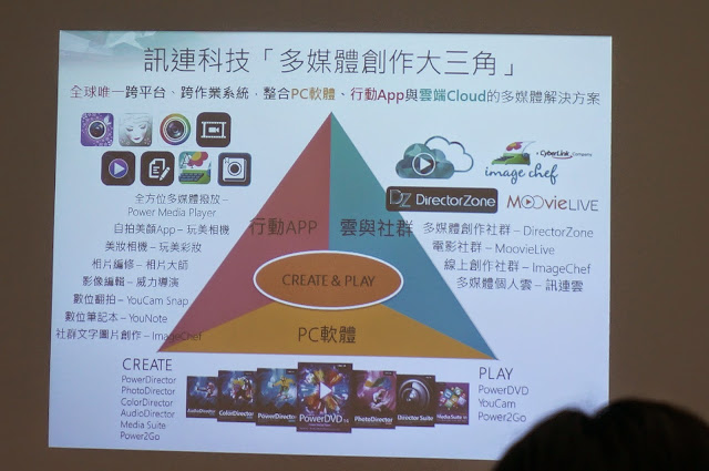 透過此次的簡報分享導覽,更讓我們這些使用者愛好者更加認知了解,全球唯一「多媒體創作大三角」包含訊連PC軟體、行動App與雲端Cloud全方位整合新世代,就是只有在訊連科技影音家族。