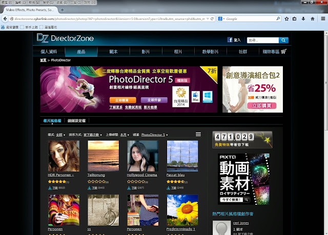 在功能選單下點選下載風格檔,便會連線開啟訊連科技雲端社群服務網站DirectorZone網站頁面。