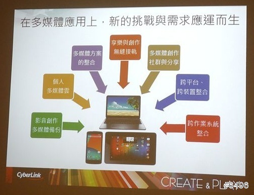 在運用上,不再像以往僅僅使用在PC,也要能在平板、手機上串連使用,讓檔案分享與創造不再因步驟繁瑣而讓使用者卻步,我個人認為訊連有發現這點是很棒的,行動裝置與行動影音已經是趨勢,無法抵擋,因而造就了FB、DROPBOX、EVERNOTE,也讓NOKIA死在沙灘上,訊連科技能順勢而行,好。