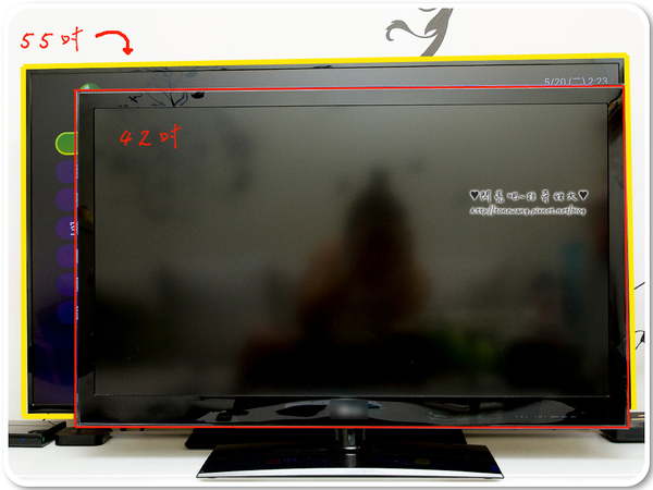 安裝完成~拿來跟原本的顯示器比一比,大小真的差很多耶