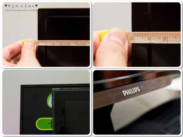 左下圖是飛利浦跟我家顯示器擺在一起的超級比一比,級窄邊框的設計讓時尚度更加提昇