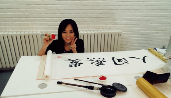 上圖為蒼井空出席電影記者會現場為片名所寫的書法,就算是華人也不見得寫得比她好