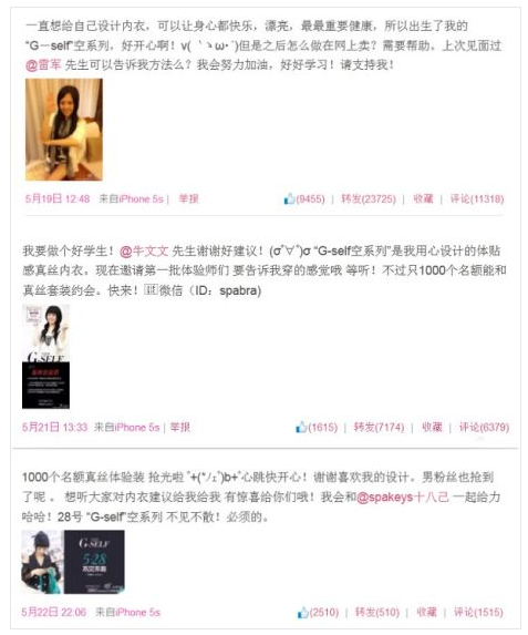 不管怎麼說,「蒼井空賣內衣」其實揭示了中國微博一個新的以粉絲與偶像為橋樑的營運平台,在賣內衣前,蒼井空就發微博“招募”1000名內衣體驗師,“頭銜”很快就被搶光,這可以看成是售賣前與粉絲一次良好的近距離互動。