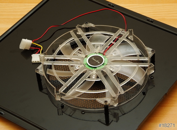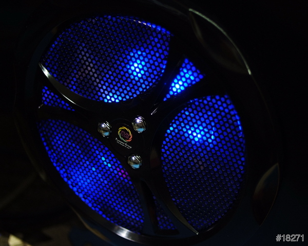 側板上有一個220x220x25mm的LED大風扇,也是TCC921的一大特色