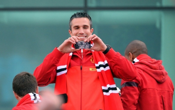本屆荷蘭隊隊長,曼聯現役前鋒,看完范佩西對陣西班牙那高難度頭球,你會覺得范佩西有如神助,圖為範佩西用iPhone 4S拍照。
