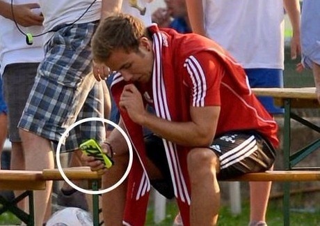 拜仁球星,德國國家隊隊員,中場不可或缺的一名球星,圖為格策拿著iPhone 5s。