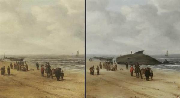 英國藝術品管理員在清潔一幅17世紀荷蘭海景畫時得到了一份意外的驚喜:畫中隱藏著一條擱淺的鯨魚,而且隱藏了至少150年之久。