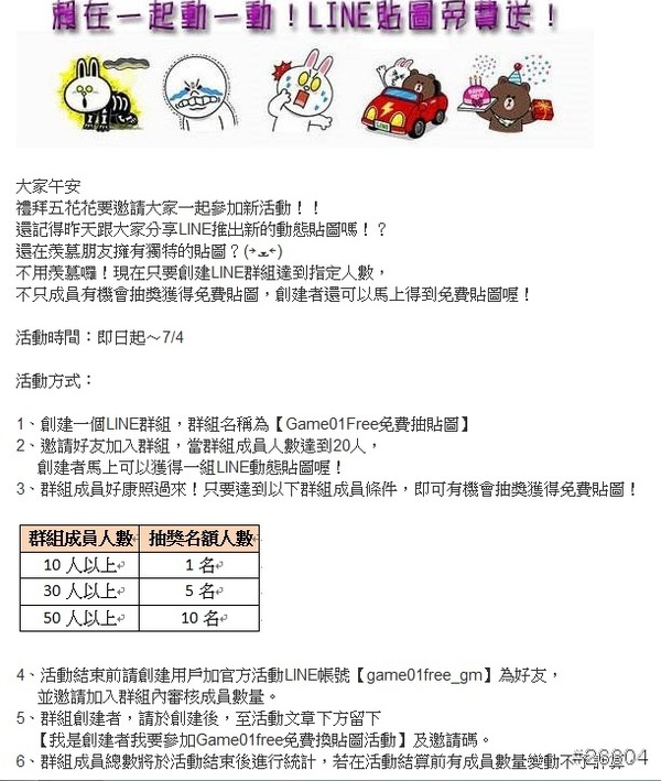 【Game01Free免費抽貼圖】,之後再邀請好友加入群組,當群組成員人數達到20人,