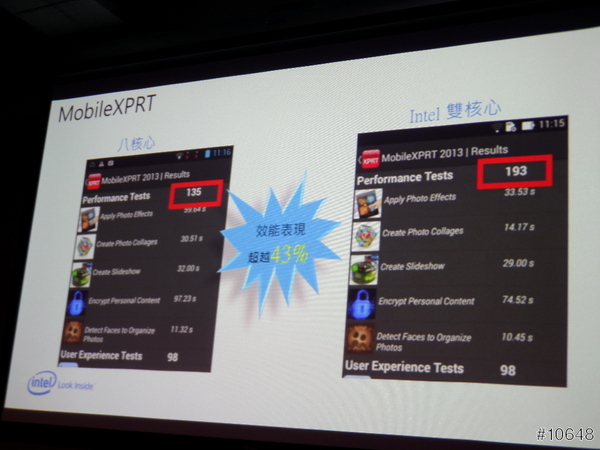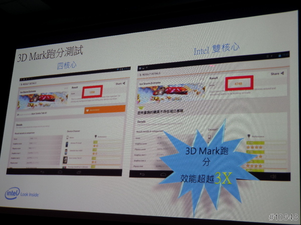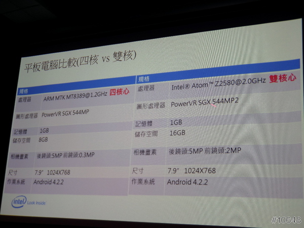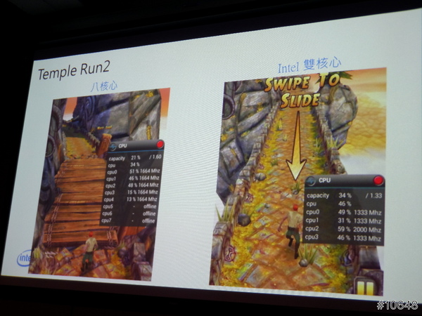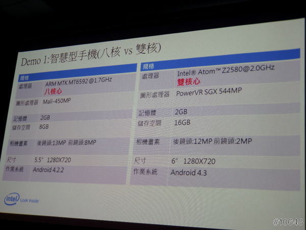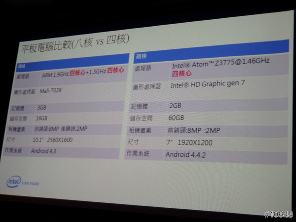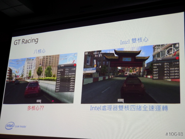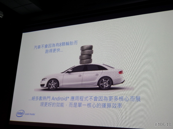 2. Intel 說明無論處理器是4核心或8核心,運用在行動裝置上跑得順,低耗能才是王道,建議網友們如有機會到3C賣場親自體驗 Intel Inside 行動裝置的操作是否滿足您的使用習慣及需求,也許不需要求頂級規格也能擁有高CP值的產品。