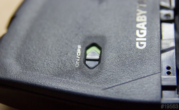 ↑上面兩張是滑鼠電源開關鍵與雷射接收器的樣子,以背面的材質嘗試滑滑看的感覺,若是用在一般的塑膠或木頭接面會是最順的,用到滑鼠墊上就感覺重了一些,但這部分可以藉由dpi調整來適應。