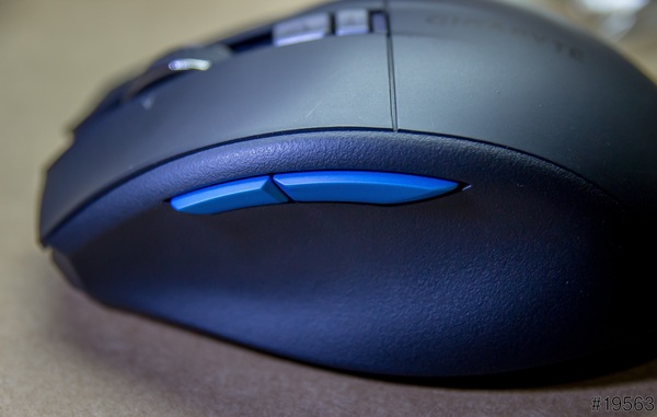 ↑滑鼠中間有兩段dpi切換鍵,另外上方是飛梭功能鍵,按住時滑鼠移動方向就等於滾輪方向。