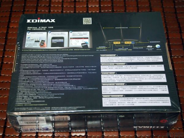 ▼外盒背面清楚寫著 BR-6479Gn詳細功能和支援 EDiMAX最新 iQ Setup APP,此 APP可以在 iPhone和 Android手機上輕鬆設定 BR-6479Gn,無須在電腦上操作