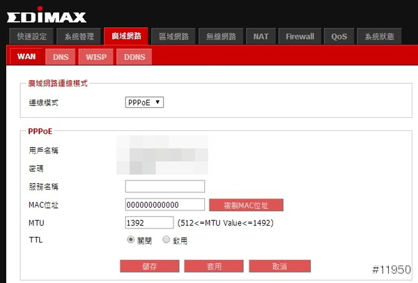 ▼中華電信用戶大概都是使用PPPoE連線,輸入完中華卡片上的帳號密碼就可連線