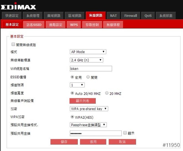▼無線網路設定頁面中可以進行基本設定、設定訪客 SSID、進行進階設定、設定 WPS、設定存取控制、設定無線排程
