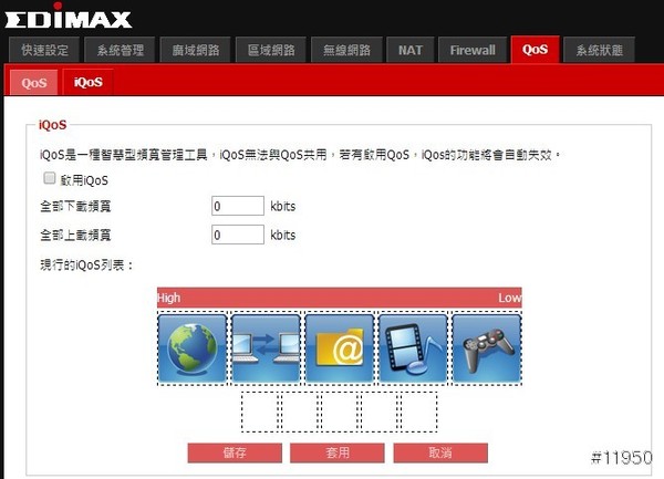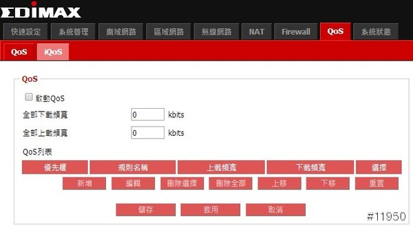 ▼QoS設定頁面中可以設定 QoS頻寬管理或 iQoS智慧頻寬管理