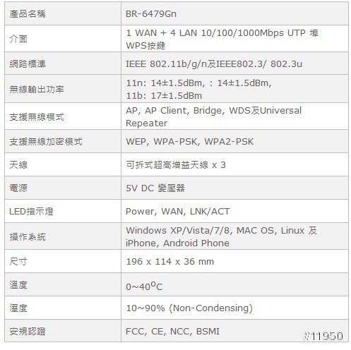 ▼開箱前先來看 EDiMAX BR-6479Gn 詳細規格