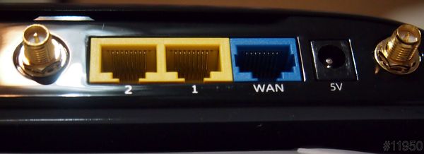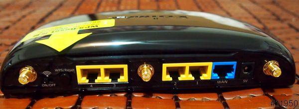 ▼機器背後的1個WAN和4個LAN連接埠都是 Gigabit等級,Reset和WPS按鈕設計在一起並有無線網路開關