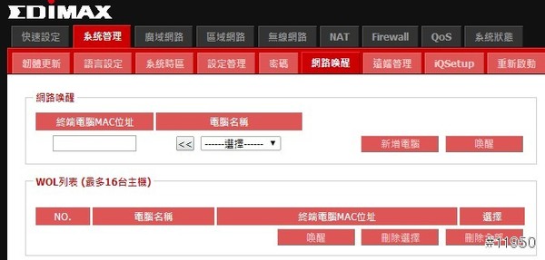 ▼在系統管理中可以更新韌體、設定語言、設定時區、設定管理、改密碼、設定網路喚醒、設定遠端管理、設定 iQSetup和重新啟動機器