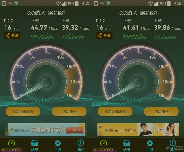 ▼中華數據機比BR-6479Gn下載快3M,上傳都是39M,PING一樣都為16ms