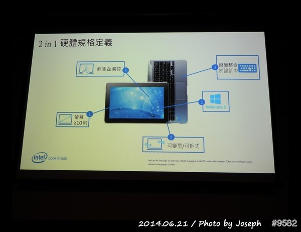 再來則是介紹2 in1的Windows產品,也就是一般俗稱的變型金剛類型產品,可以在筆電與平板之間作變化,讓消費者可以只買一個產品而有兩種使用方式