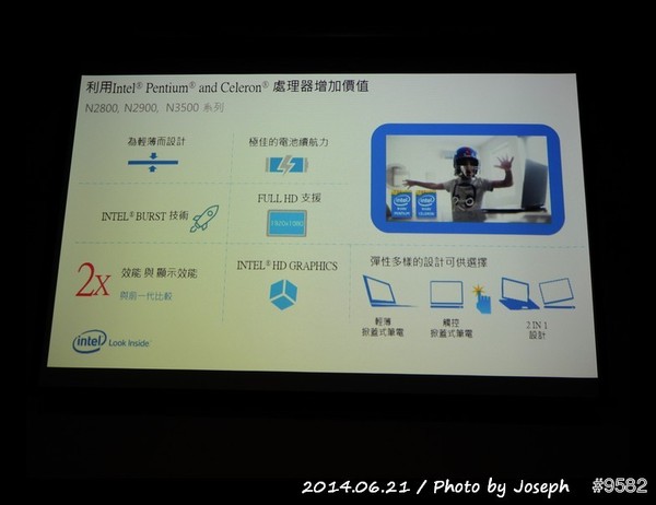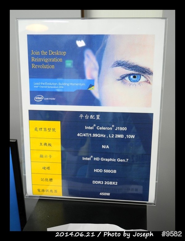 現場展示使用INTEL Celeron J1900處理器PC與另台AMD Sempron3850 PC作比較, J1900不僅可以順利播放4K影片,而且秏電量更是只有20W左右而已,真的是非常省電