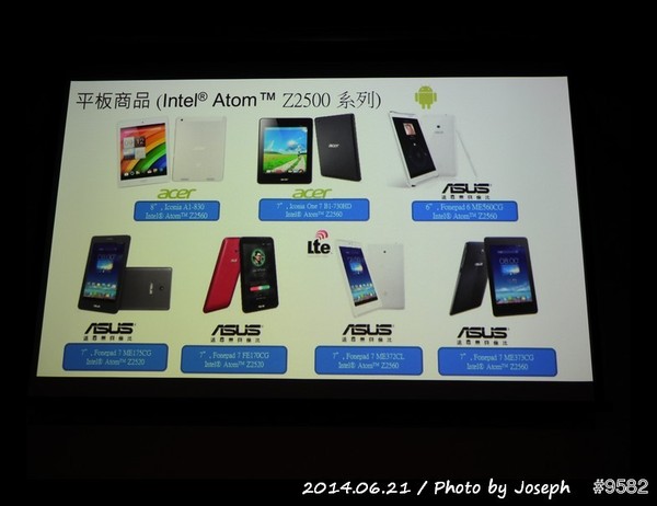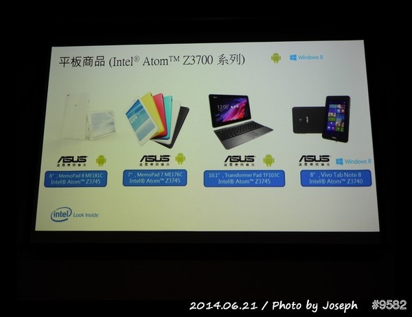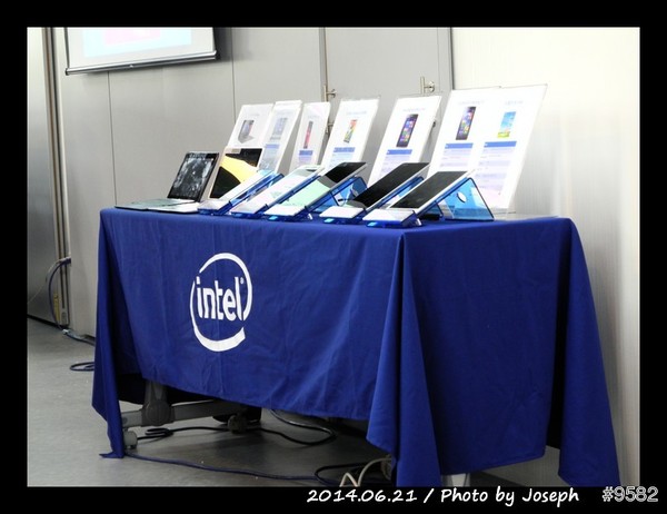 現場展示使用INTEL晶片的平板/筆電/手機產品排排放供大家實機體驗