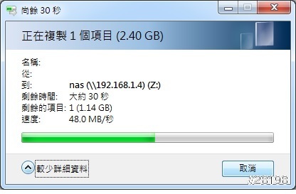 此時 NAS jumbo frame 為 1500 , 若使用 RT-N16 with 9K jumbo frame 速度約接近 60MB/秒