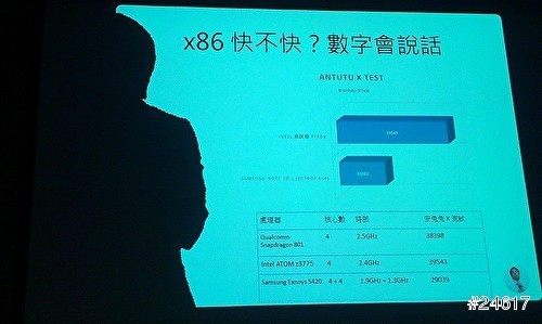 英特爾是由 Jim 介紹 公司 微處理 產品 運用於 手持 行動裝置 與 AMD 跟 ARM 效能比較