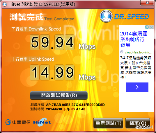 電腦接此分享器測速 讓我有點意外 ~~~(((┏(; ̄▽ ̄)┛