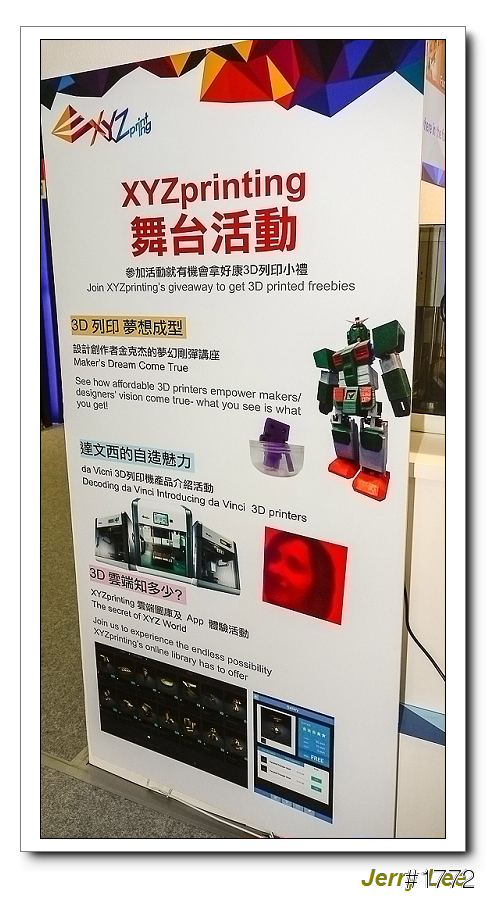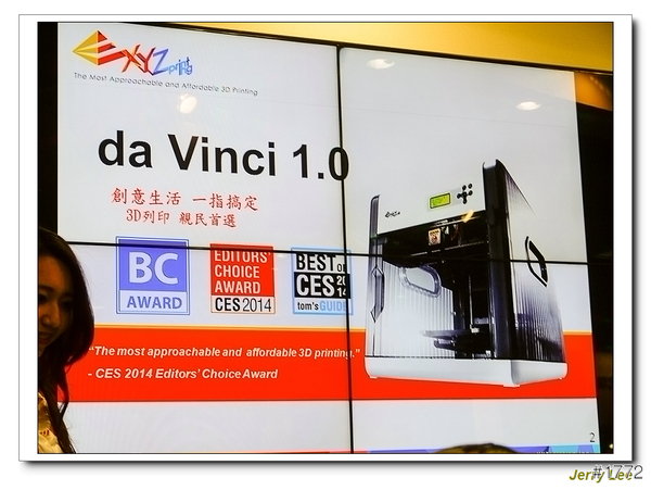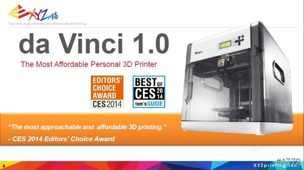 ▲這次來到三緯國際立體列印科技股份有限公司(XYZprinting)在COMPUTEX所展覽的攤位,旗下首款3D列印機da Vinci 1.0,以全球最佳的性價比,榮獲2014 北美消費電子展編輯首選大獎(CES Editor’s Choice Award)。XYZprinting擁有獨家3D列印機製造技術,致力開發每個人都能輕鬆享有的3D列印機。XYZware等專利軟體設計,讓創意迅速融入數位製造中,透過XYZprinting Cloud的雲端列印科技,da Vinci 3D列印機已逐步發展成為劃時代的科技產品。