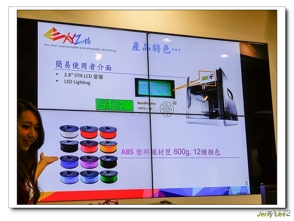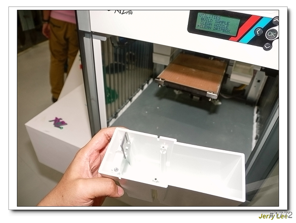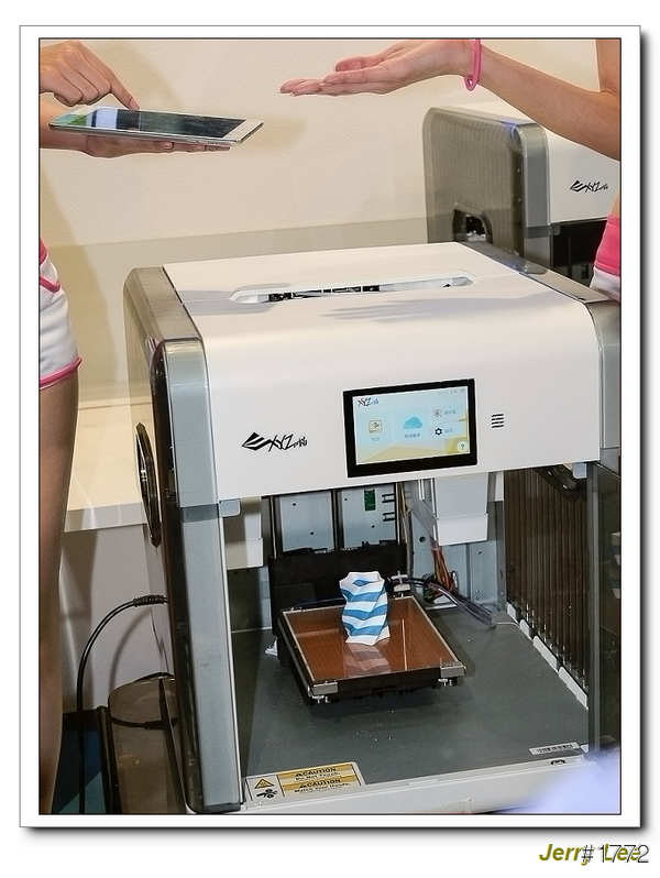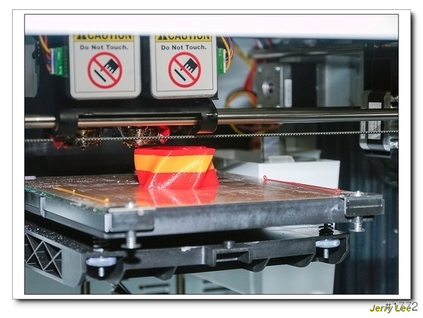 ▲首先到體驗C區,在過程中提到兩側製作簡易手把便於搬運,前方也有小門防止小朋友去觸摸,因為在運作時噴頭會達到200度高溫,當噴頭達到90度時,可以讓塑料順利接合,過3、4分鐘冷卻過後就可以取件,在列印過程中也不會有太刺鼻的味道,線材盒符合安全規範,線材盒一盒600克,平均1克1.4元台幣,列印一個筆筒平均25分鐘,大概25克,差不多$35,還蠻划算!