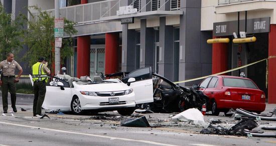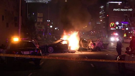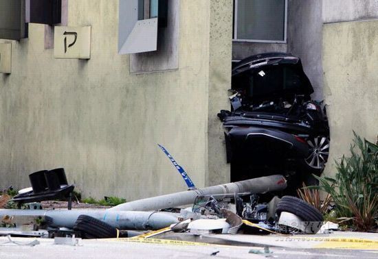 這起Model S被盜事件發生在洛杉磯西部的一家特斯拉經銷商處。警察開始追逐這輛被盜電動汽車,疑犯駕駛這輛電動汽車高速逃逸,但由於失控而撞向了路邊的燈柱,結果整個輛車被撞成兩半,有一半車身擠進了一棟建築物的中間,而另一半則撞向了其它一些輛車。與此同時,這輛被盜Model S中的電池也起火燃燒,並進一步將車輛燒毀。