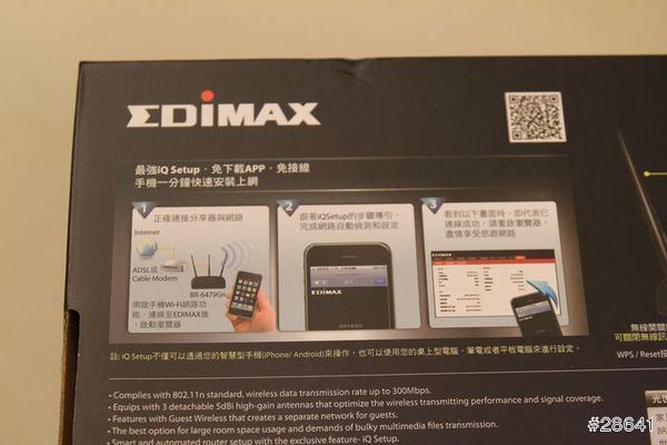 ▲產品包裝背後,除了常見的規格說明外,特別以圖文並茂的方式告訴消費者,這台BR-6479Gn N300可以免接線免下載,用手機直接設定Router的控制台,這樣的功能在舊的SMC WBR14S-N3 Router上並沒有,等一下來試試看。