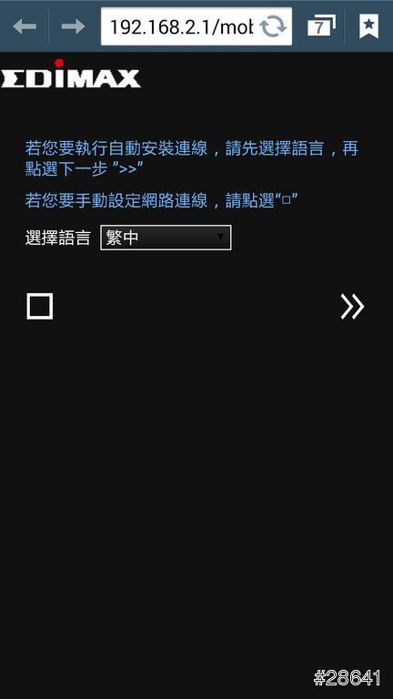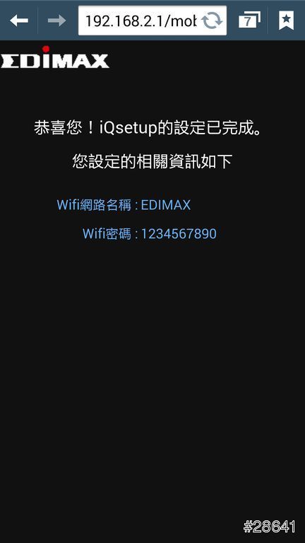 ▲BR-6479Gn N300的預設控制台IP位置是192.168.2.1,所以我們直接打開手機瀏覽器輸入IP位置就可以進到EDIMAX免費提供的iQ Setup服務。