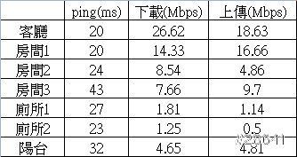 ▲使用wifi連線,離Router最近的客廳,數據如圖所示。