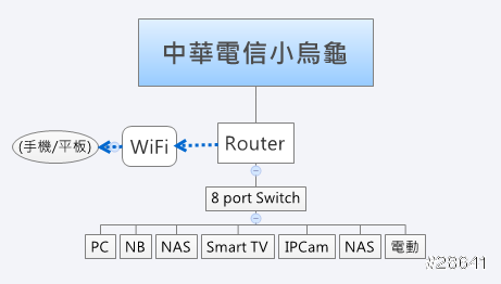 進入管理介面設定前,個人先簡單介紹一下自己使用環境,房屋大小約30坪左右格局為長方型,結構為3房2衛1廳,因數年前曾重新裝潢,故家中收納或衣廚櫃多為隱藏式設計。我用繪圖軟體簡單的標示一下房間內的相對位置,與接線方式。