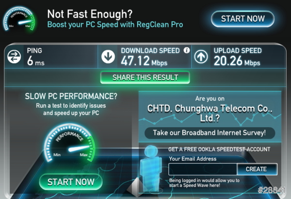接下來配合測速網站和工具看看有線和無線的速度。個人使用的是中華電信光世代60M/20M