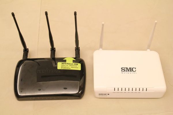 ▲3根5dBi全向性天線,雖然跟某些主打「高功率」或「穿牆王」Router比,天線是小根了點,但是先前電腦王的文章已告訴我們,大支不一定有用。是驢、是馬?牽出來遛遛看就知道!