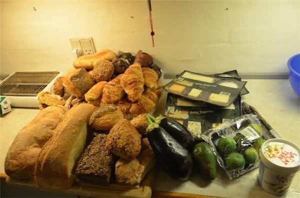 一大袋麵包、蛋糕、餅乾和新鮮的瓜果蔬菜安靜地躺在箱子裡,有一些甚至還帶有買來時候的塑膠包裝。北歐寒冷乾燥的天氣讓溫度和濕度控制在一個極佳的範圍內,大部分食物都保持著它們被丟棄前的樣子,沒有腐敗,沒有酸臭,這是大自然和丹麥人民共同給予的最好饋贈。